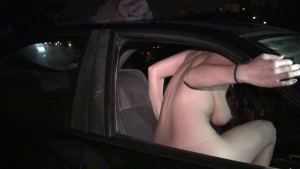 She's gorgeous, she's in perfect shape, she's very busty and... a bit shy... at first, but as soon as she gets in the car she's ready to have fun and gets undressed right there! When she arrives to the spot there's nobody around and she almost gets a little sad, but as soon as some guys show up a wildest party begins with lot of action right through the car window!